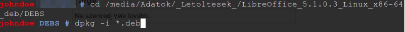 - Beírod (vagy innen kimásolod): dpkg -i *.deb, és enter, ha kéri, akkor nyomsz egy i-t (igen) és egy entert