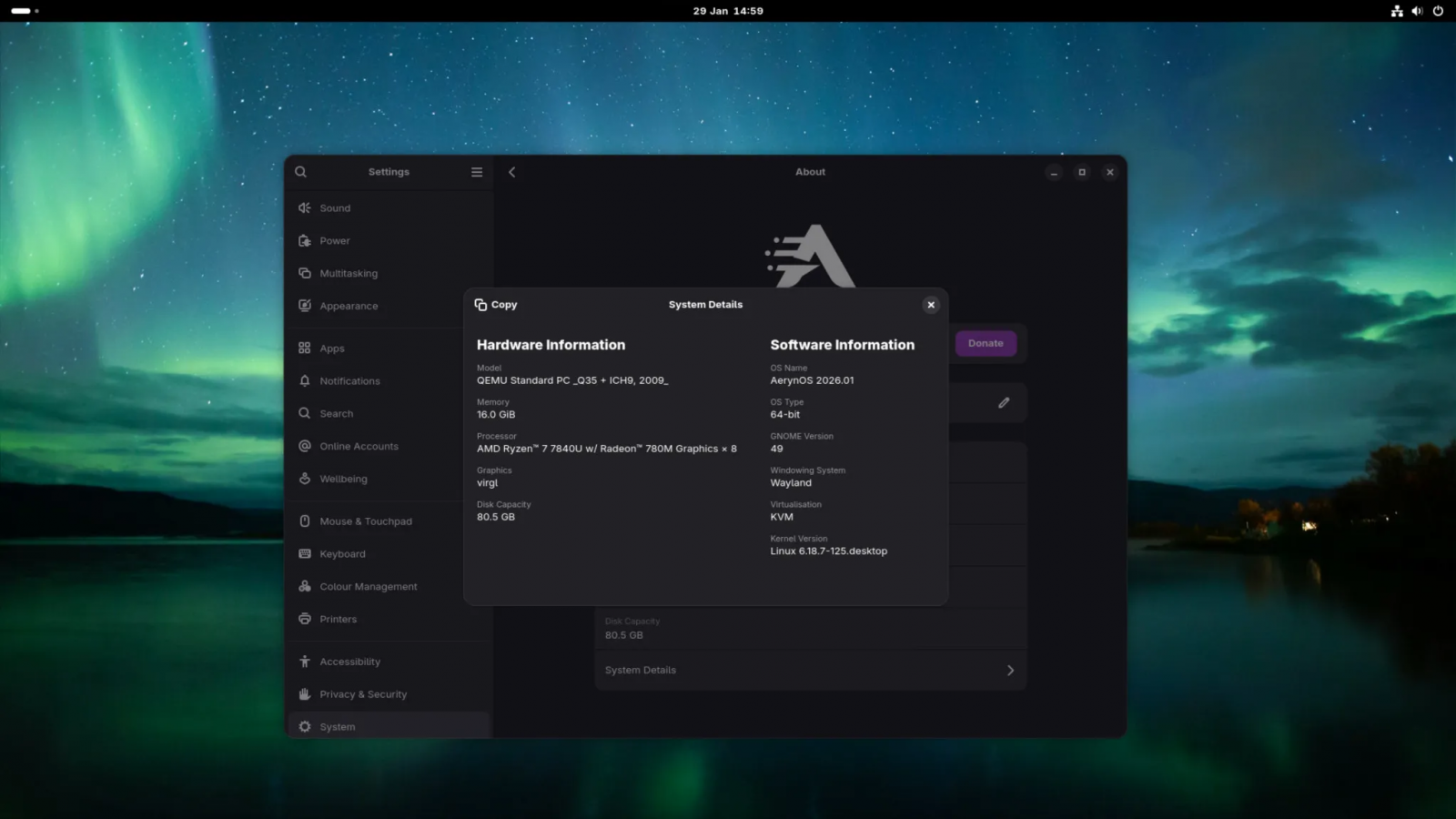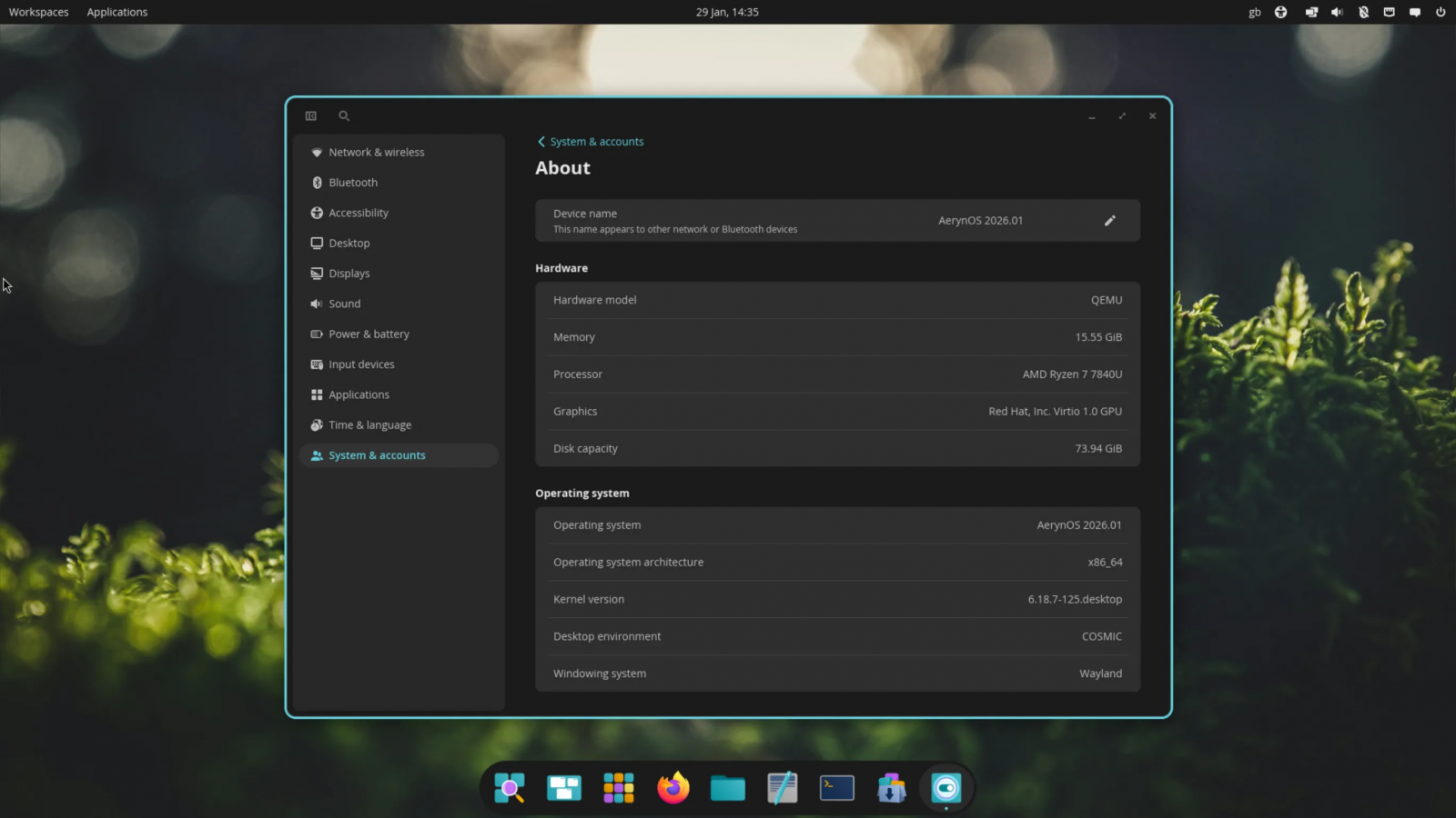 AerynOS 2026. januári pillanatkép: friss GNOME, KDE Plasma és COSMIC környezetekkel